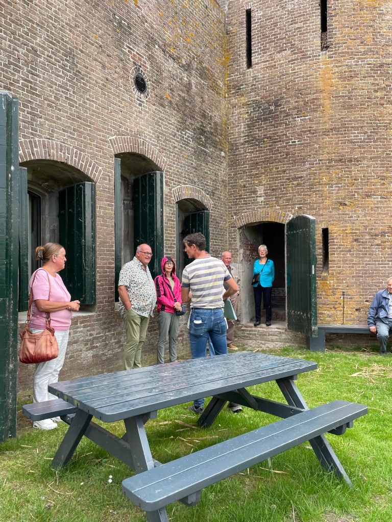 Op zaterdagmorgen 20 september vertrokken we in een aantal auto’s naar Numansdorp. Naar Fort Buitensluis. Daar aangekomen werden we in twee groepen gesplitst en onder leiding van twee enthousiaste gidsen begonnen we aan de rondleiding. De ene groep begon buiten aan de rondleiding en de andere groep startte binnen. In en buiten het fort was veel te zien en veel te vertellen. Geweldig veel interessante informatie kregen we te horen. Zelfs voor diegenen die al eens een bezoek aan het Fort hadden gebracht was het heel bijzonder. Na veel gezien en gehoord te hebben sloten we ons bezoek aan Fort Buitensluis af met een heerlijke kop koffie of thee met daarbij een grote punt heerlijke appeltaart. Een geslaagde excursie op deze startzaterdag. Op zondag 21 september was iedereen om 9.30 welkom in “De Erve” waar een heerlijk ontbijt klaar stond. Een uur later begon de startdienst met als thema “Kijk! Laat je verrassen door het werk van Gods Geest.” Kortom….een startweekend waar we in dankbaarheid op terug kunnen kijken. ![]() ![]() ![]() ![]() ![]() ![]() ![]() ![]() ![]() ![]() ![]() ![]() ![]() ![]() | ||